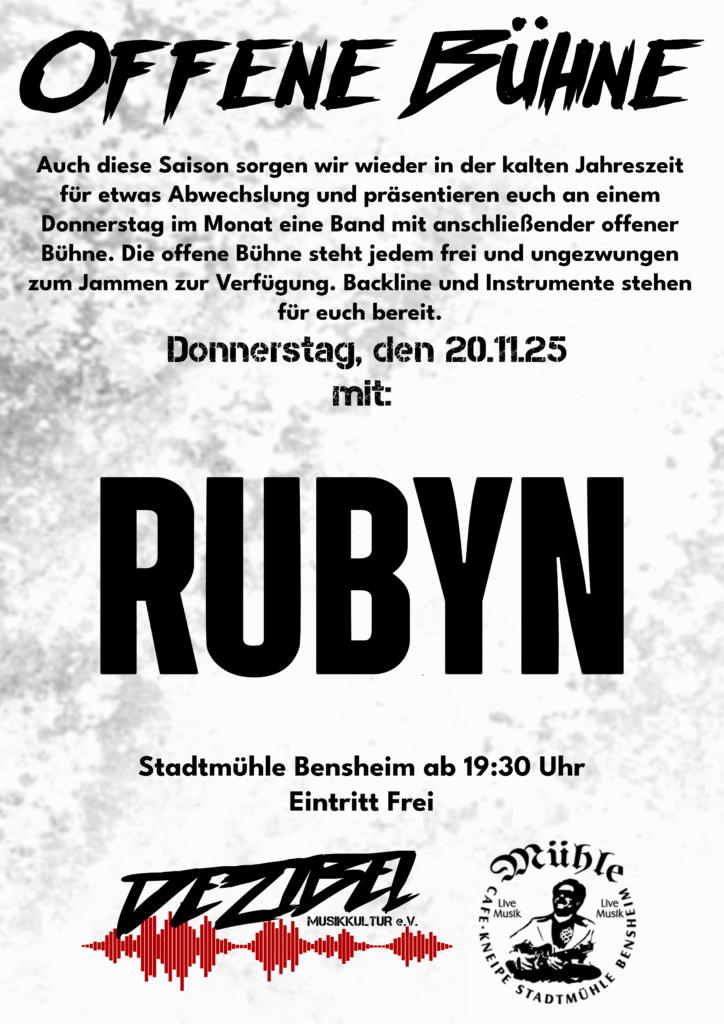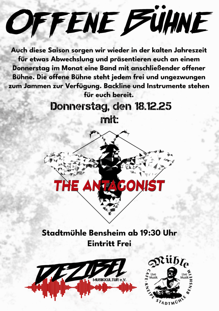 Um in der kalten Jahreszeit für etwas Abwechslung zu sorgen, präsentieren wir euch jeden letzten Donnerstag im Monat eine Band mit anschließender offener Bühne. Die offene Bühne steht jedem frei und ungezwungen zum jammen zur Verfügung. Backline und Instrumente stehen für euch bereit.